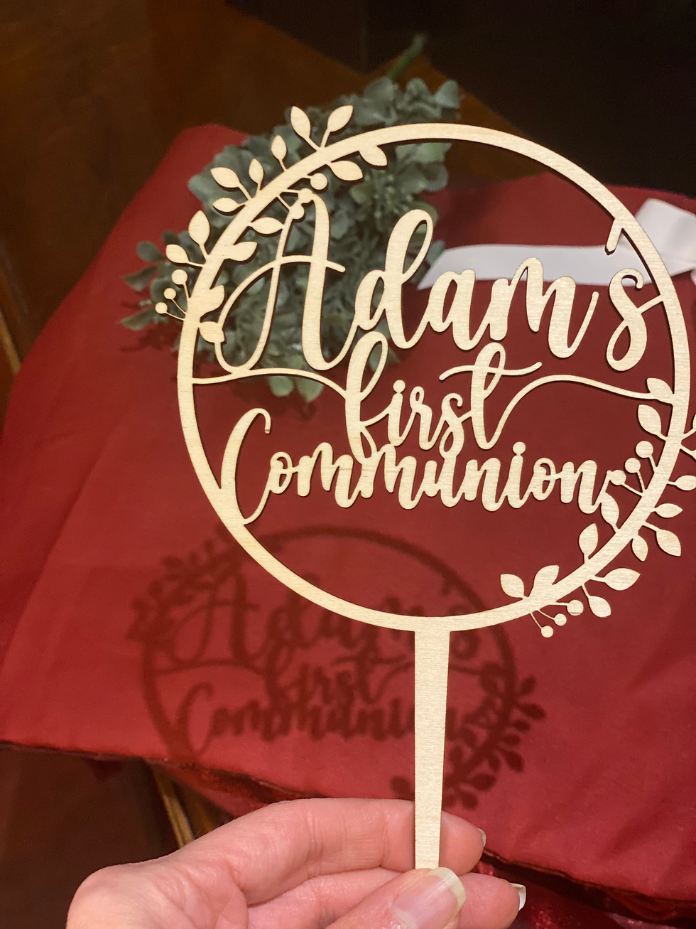 Acrylic or Wood cut-out designs with a pick. All our cake toppers are made in-house. Select from a range of customizing options, finishes, designs and sizes found below. Send us a message for a custom design.